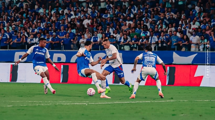 Depois do gol, o Cruzeiro recuou e viu o Fortaleza crescer no jogo. Nos acréscimos, em jogada de fundo pelo lado esquerdo com infiltração de Lucas Sasha, o tricolor de aço teve sua primeira finalização.